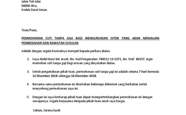 Surat rasmi permohonan cuti tanpa gaji kecemasan s. Yuk belajar 14 contoh surat cuti tanpa gaji dari majikan. Contoh surat cuti tanpa gaji kerana menjaga anak ramai yang tak tahu dan tanya .