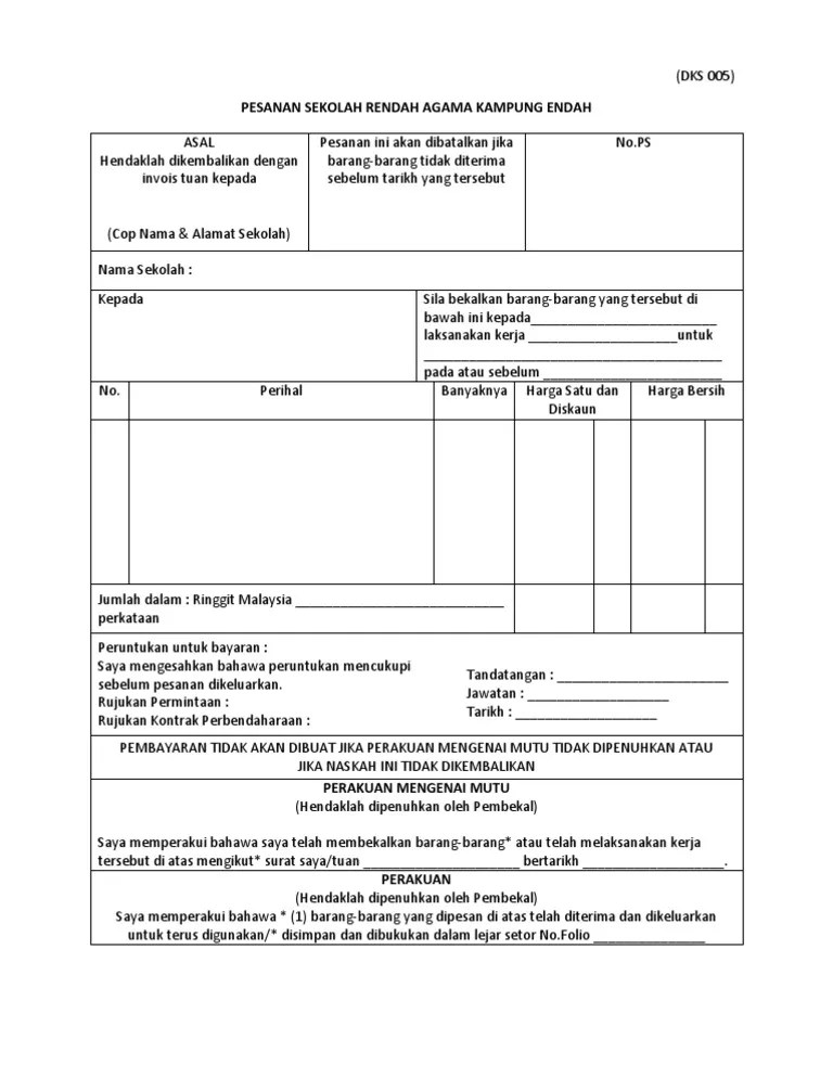 Contoh Borang Pesanan Belian : Borang Pesanan Sekolah Pdf
